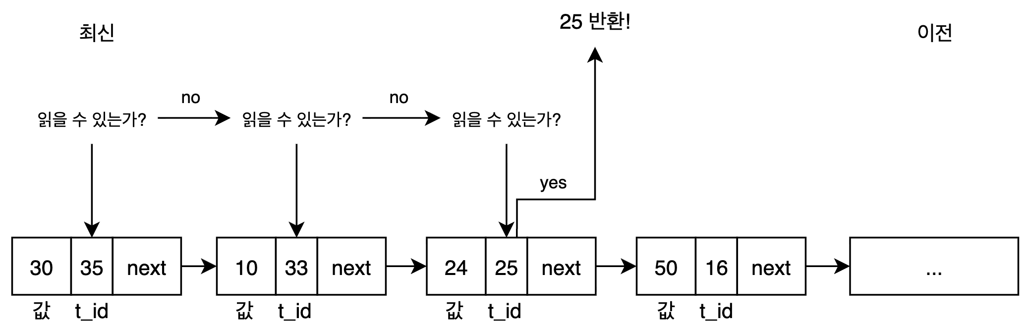 이제 어떤 과정을 통해 락 없는 읽기가 가능한지 알아보겠습니다.