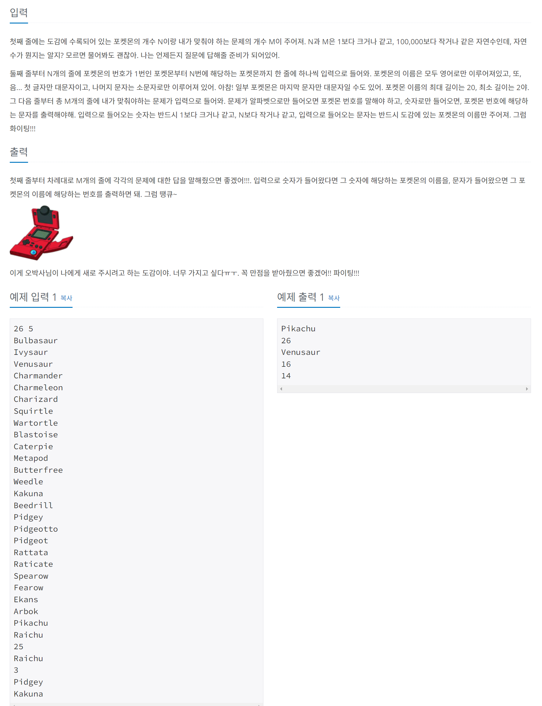 int n = Integer.parseInt(st.nextToken());//도감에 있는 포켓몬의 수