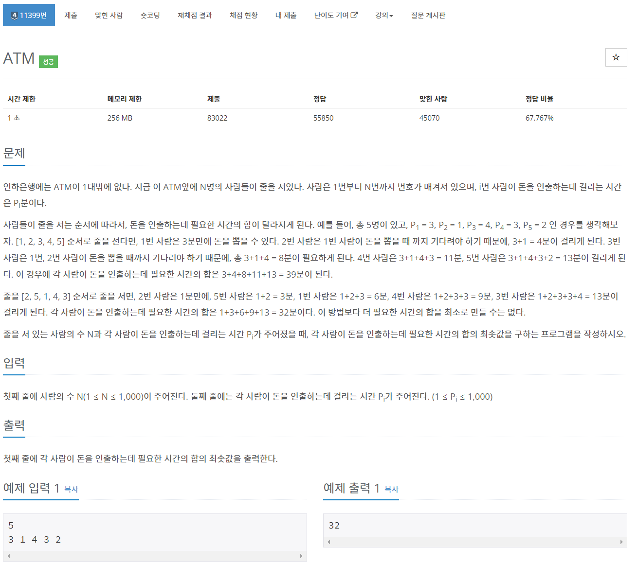 정렬 문제이다. 정렬 후 P1, P1+P2, P1+P2+P3 ....... 을 모두 더하면 된다.