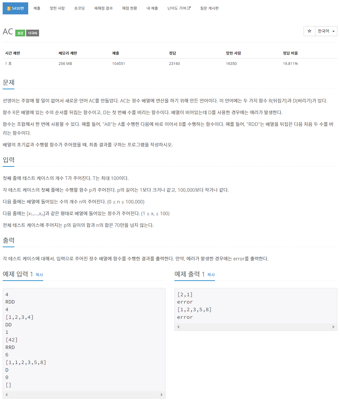 - 따라서 start > end + 1이면 배열이 비어있는 상태에서 D 명령을 했다는 것이므로 error를 출력하면 된다.