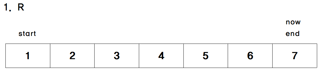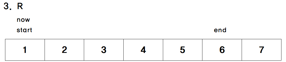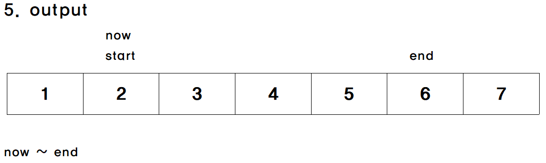 now가 start 이므로 now++, start++ 로 배열을 건드리지 않으면서 index만 이동한다.