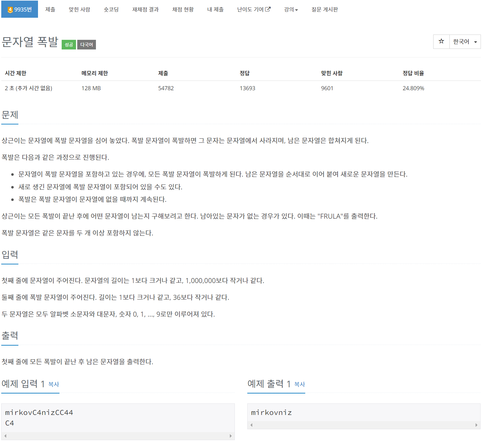 처음에는 String과 contains, replace 함수를 사용해 풀었다. 그런데 메모리 초과가 났다. 문자열의 길이가 1,000,000이나 되는 것이 원인이라고 생각해 Stack을 사용해 풀었다.