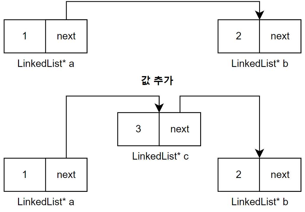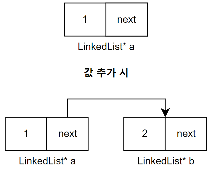 이제, next에 다른 LinkedList*를 넣어 다음(next) LinkedList에 연결해 주자