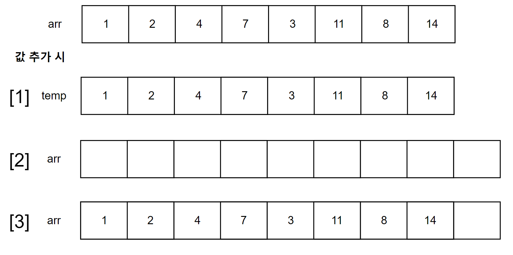 함수를 사용해서 데이터를 추가하는 예제이다. 맨 마지막에 데이터를 삽입하는 함수이며, 특정 위치에 데이터를 삽입하는 함수는 직접 구현해 보는 것을 권장한다.