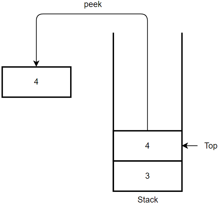 Stack을 peek 하면 Stack의 가장 위(Top)에 있는 데이터를 제거하지 않고 반환한다.