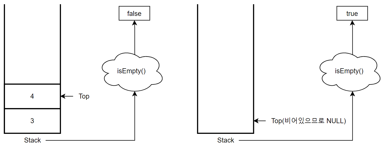 isEmpty 연산은 Stack이 비어있는지 체크한 후, 비어있으면 true, 비어있지 않으면 false를 반환한다.