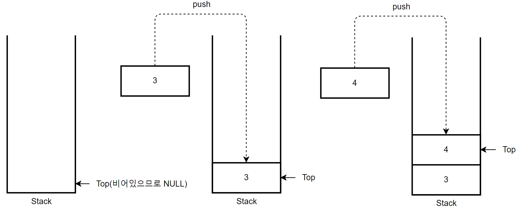 Stack에 push를 하면 Stack의 가장 위로 데이터가 들어가고, Top은 그 데이터를 가리키게 된다.