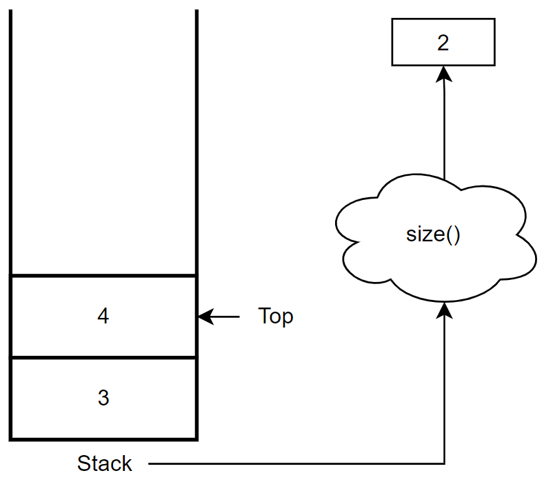 size 연산은 Stack의 크기(들어있는 데이터의 개수)를 반환한다.
