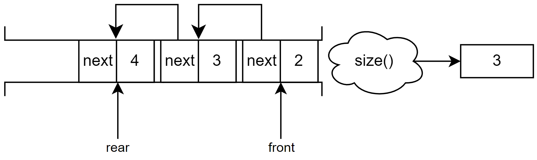 size 연산은 Queue에 저장되어 있는 데이터의 개수를 반환한다.