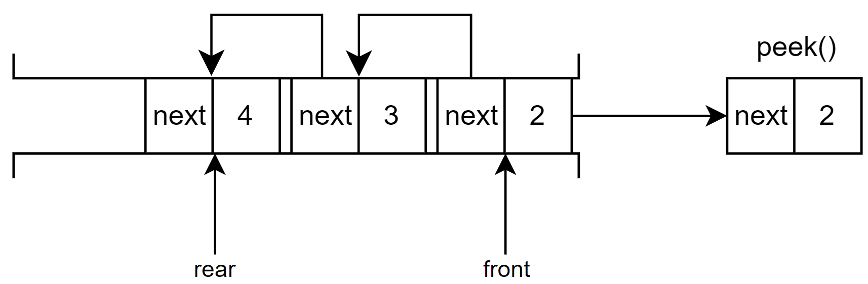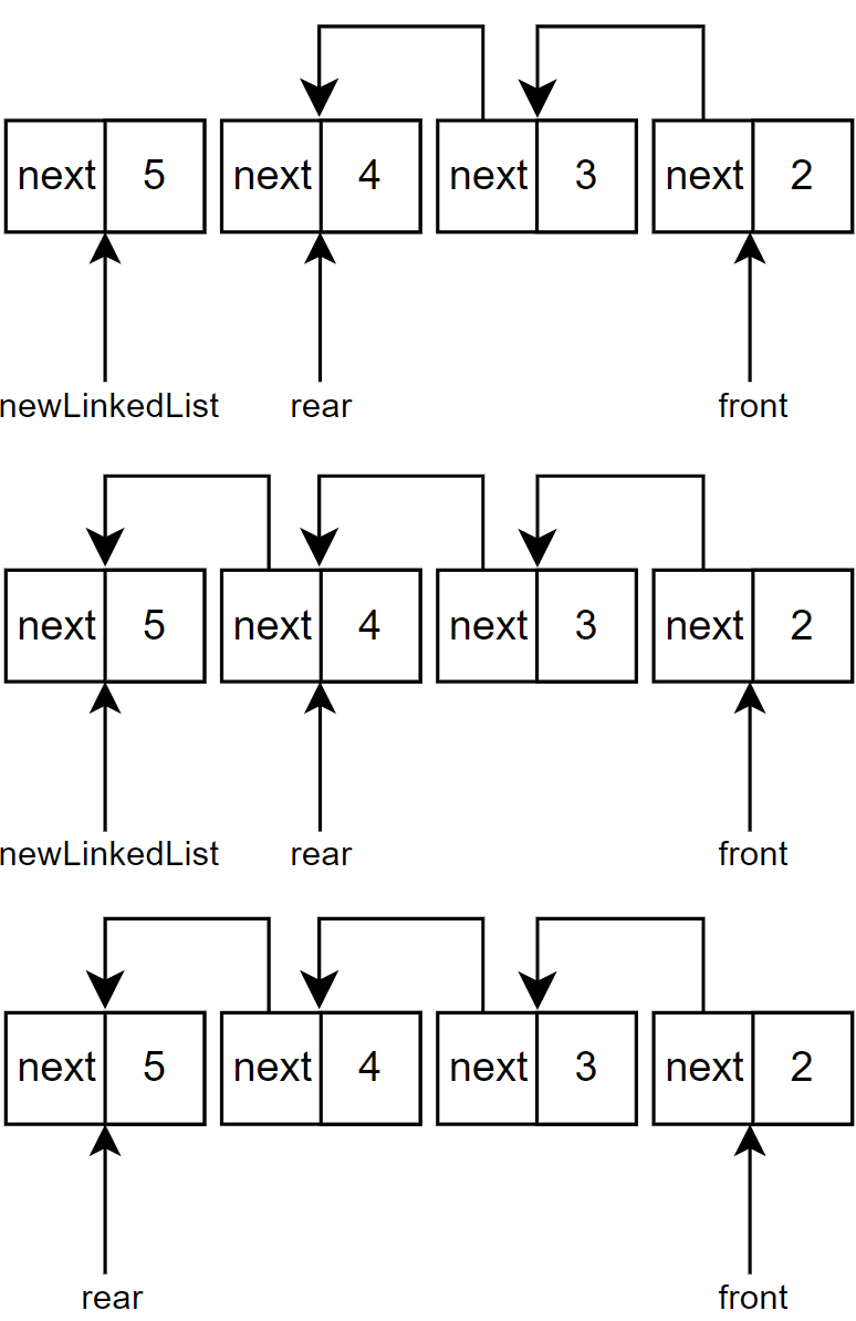 만약, rear에서 front 방향으로 LinkedList가 연결되어 있다고 가정해 보자.