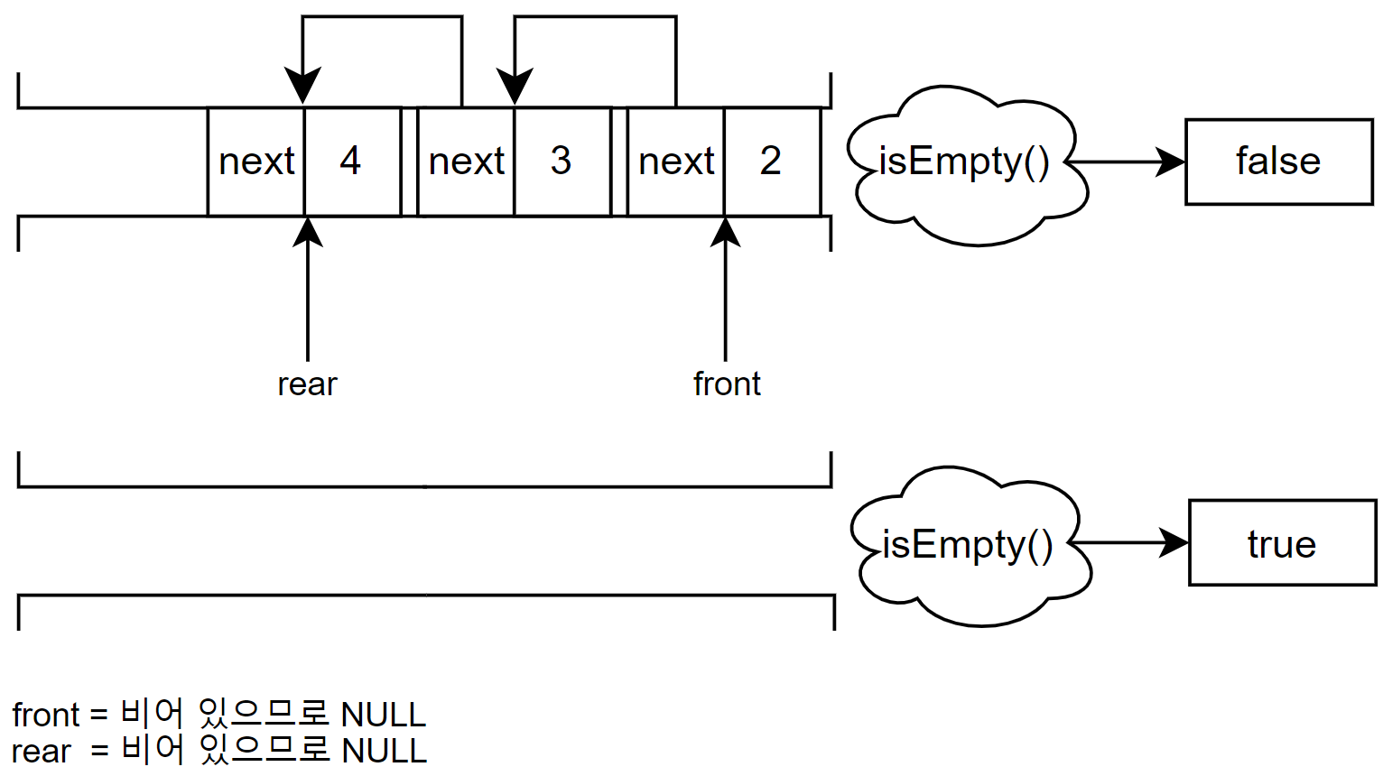 isEmpty 연산은 Queue가 비어있으면 true, Queue가 비어있지 않으면 false를 반환한다.