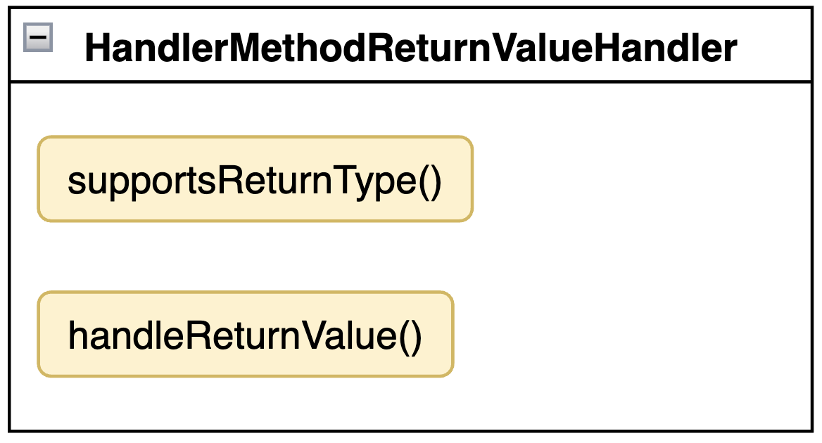 HandlerMethodReturnValueHandler 는 두 가지의 메서드를 가진다.